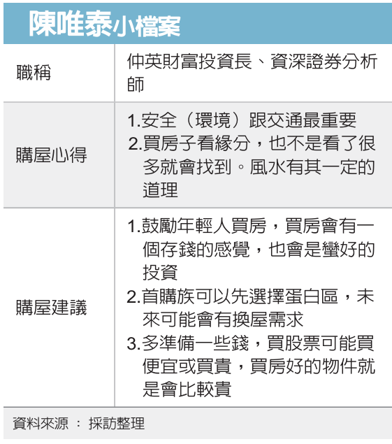 名人找個家/仲英財富投資長陳唯泰 買房是投資(經濟日報)114.11.22